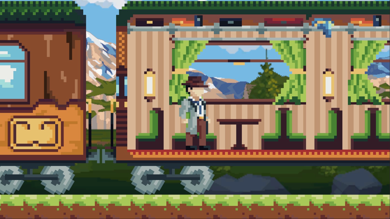 Hello guys, my name is Raven, and I would like to present to you "The Last Stop", a 2D side-scroller mystery game where you play as a detective trying to get home to his daughter, only to find and explore an infinite train, meet its passengers, and uncover what is happening on the train. Solve increasingly difficult Wordle puzzles and gather new drinks to give you an advantage in solving them and progress the story to uncover the mystery behind this train.